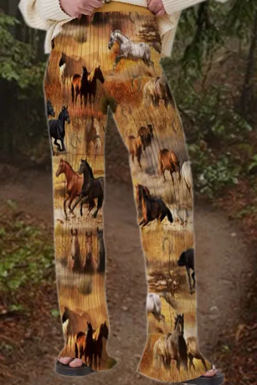 Women Fashion Horse Print Wide-Leg Pants