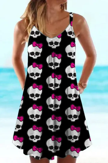 Wholesale Women Fashion Skull Print Sleeveless Dress
