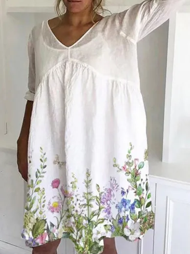 Wholesale Women Floral Print Long Sleeve Casual Dress