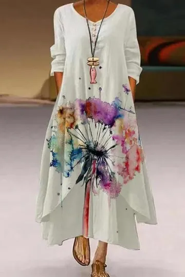Wholesale Women Floral Print Loose Casual Maxi Dress
