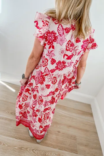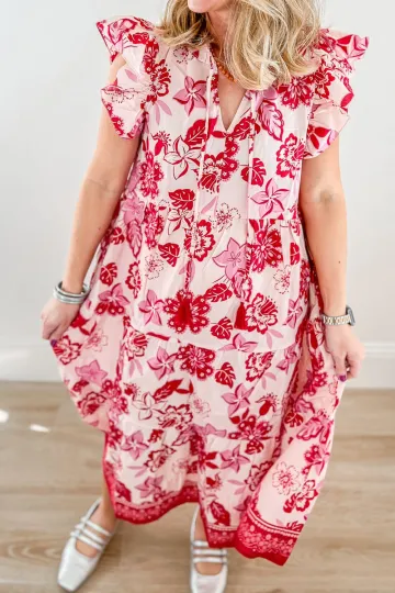 Wholesale Women Floral Ruffle Sleeve Maxi Dress
