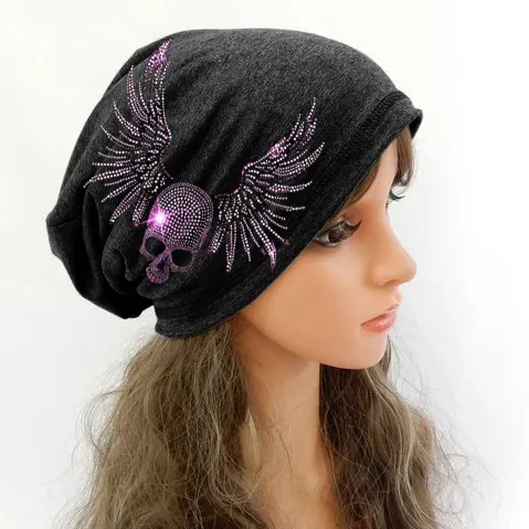 Wholesale Women Skull Rhinestone Beanie Cap Beanie