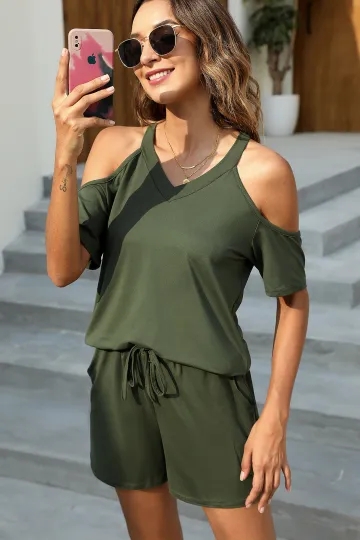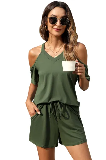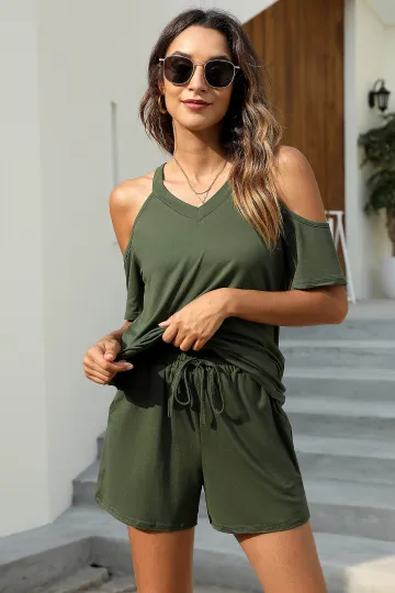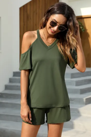 Women Tie-Dye Cold Shoulder V-Neck Set