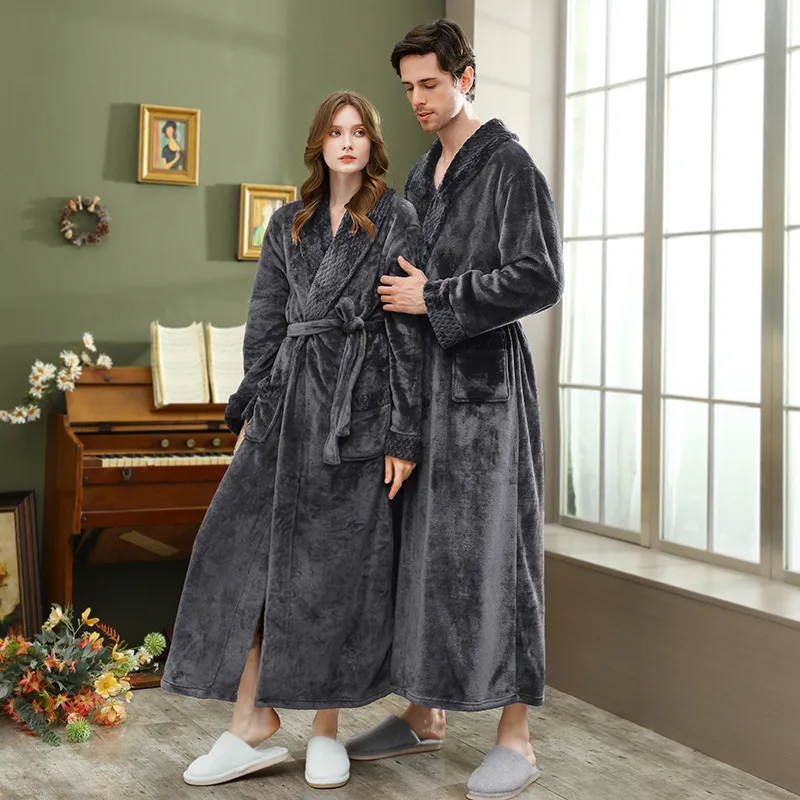 Wholesale Women's & Men's Double - Layer Thickened Fleece Bathrobe
