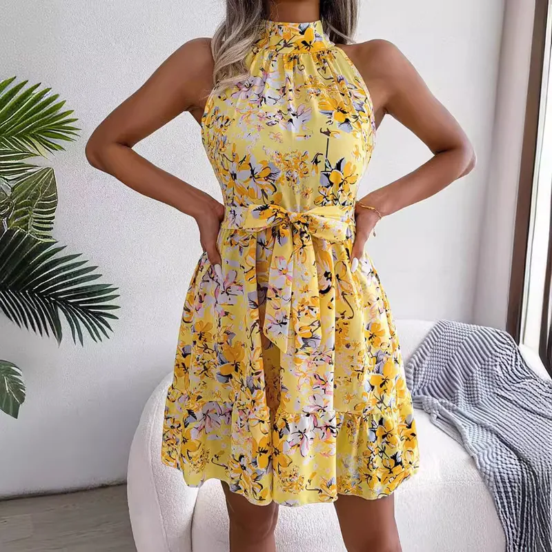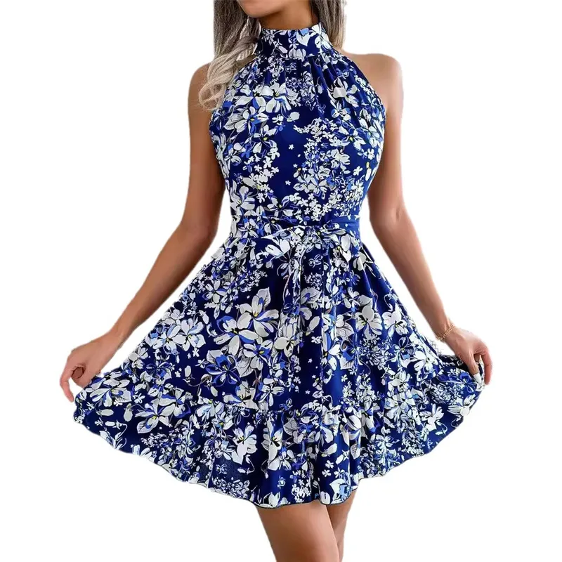 Wholesale Women's A- Line Skirt Casual Elegant Streetwear Halter Neck Sleeveless Multicolor Knee-Length Holiday Daily Selfie