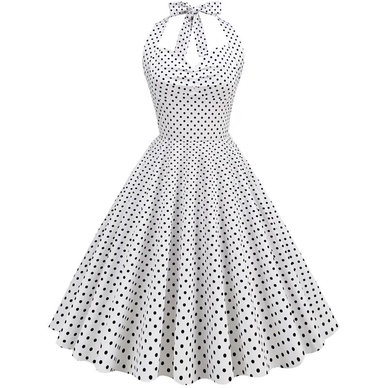 Wholesale women's a-line skirt vintage style v neck printing sleeveless polka dots midi dress street