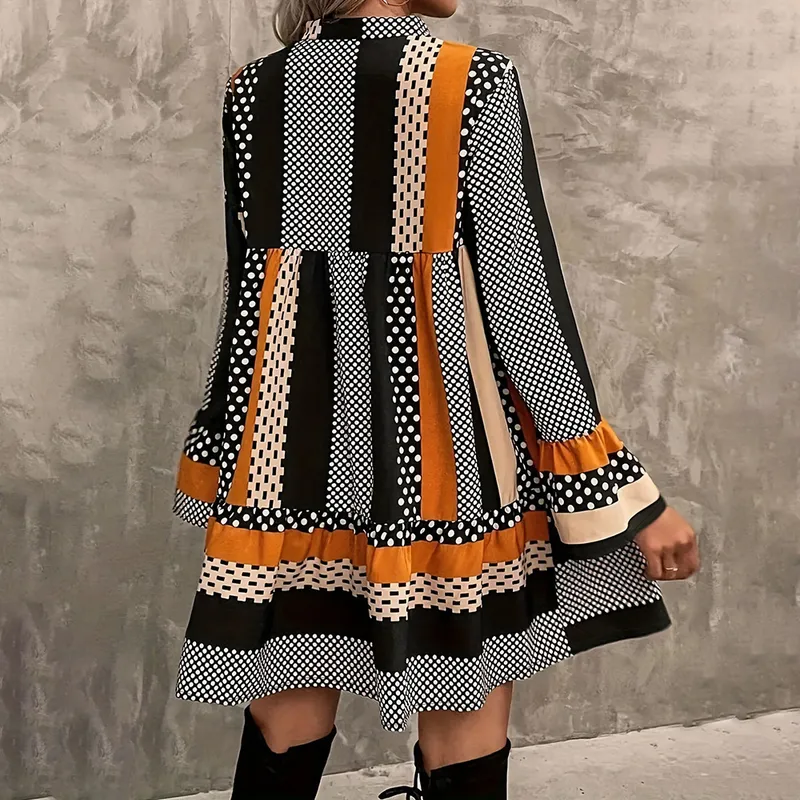 Women's Adults A- Line Skirt Casual Style Japanese And Korean Leisure V Neck Basic Model Long Sleeve Geometric Knee-Length Daily Festival