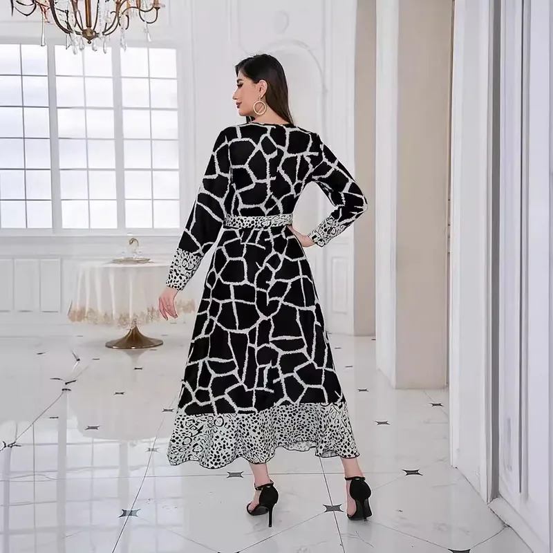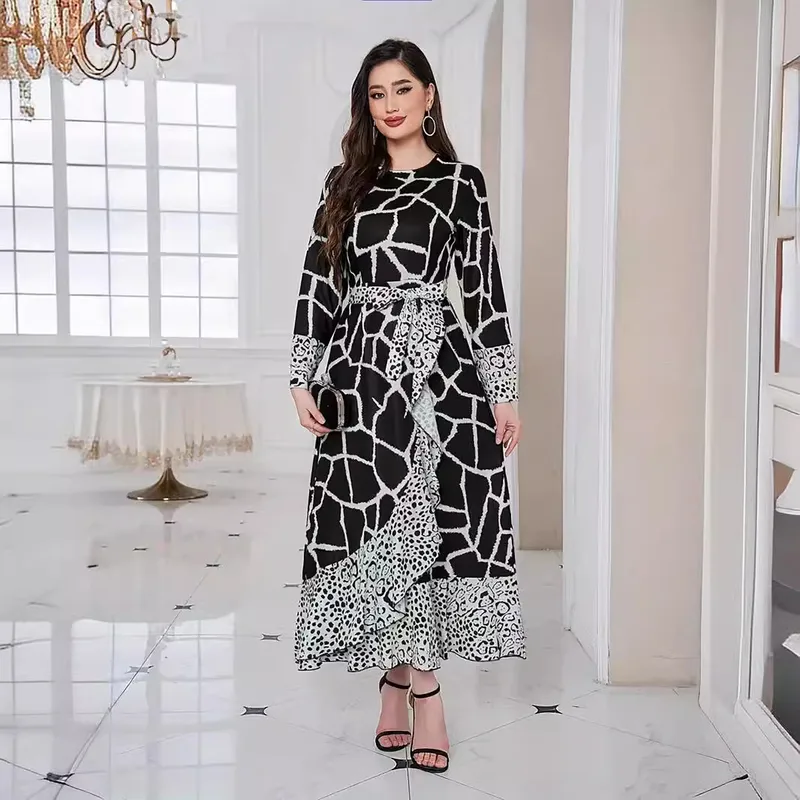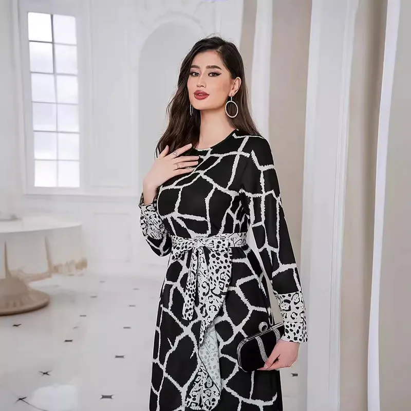 Wholesale Women's Adults Geometric Leopard Print Stitching Abaya