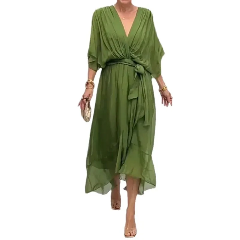 Wholesale Women's Adults Irregular Skirt Elegant Style Temperament Commuter V Neck Pullovers Straps Half Sleeve Solid Color Maxi Long Dress Anniversary Date Street