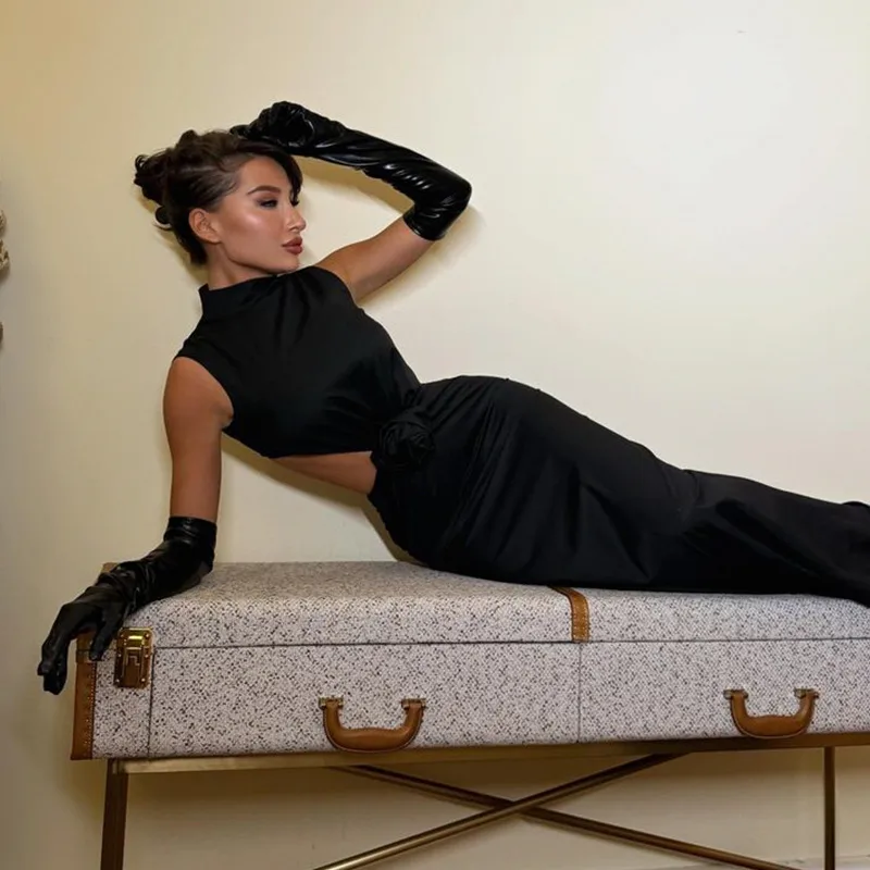 Women's Adults Patchwork Skirt European And American Wind Streetwear Basic Model Turtleneck Backless Sleeveless Human Maxi Long Dress Banquet Stage