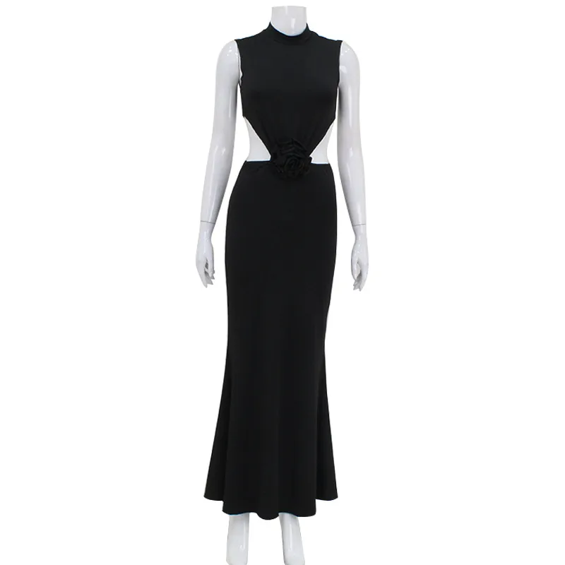 Wholesale Women's Adults Patchwork skirt European and American wind Streetwear Basic Model Turtleneck Backless Sleeveless Human Maxi Long Dress Banquet Stage