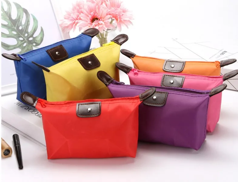 Wholesale women's all seasons nylon solid color elegant dumpling shape zipper cosmetic bag