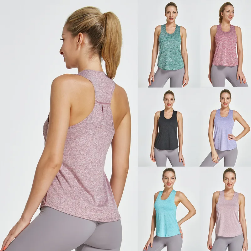 Wholesale Women's Basic Sports Solid Color Polyester U Neck Active Tops Racerback Tank Tops