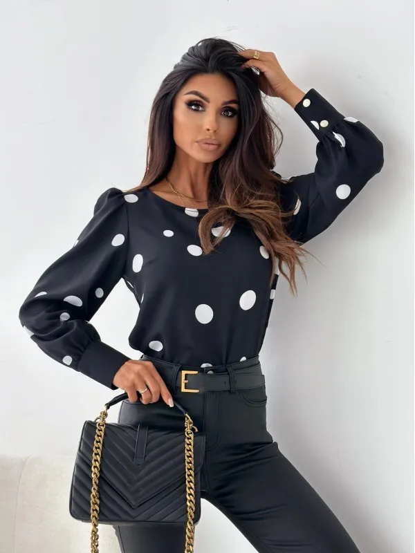 Wholesale women's blouse long sleeve blouses printing elegant polka dots