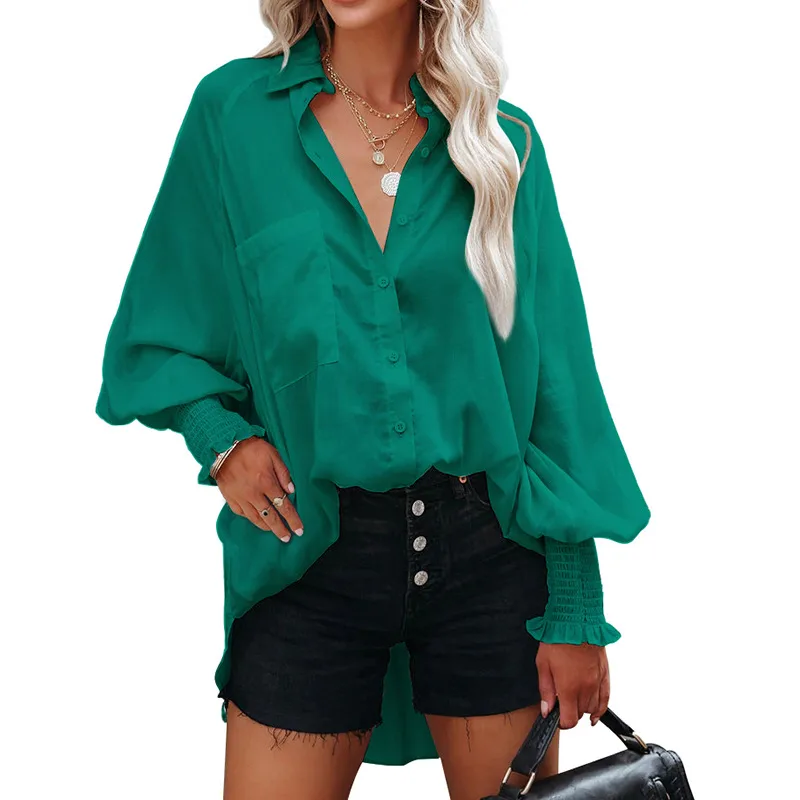 Wholesale women's blouse long sleeve blouses printing fashion stripe solid color