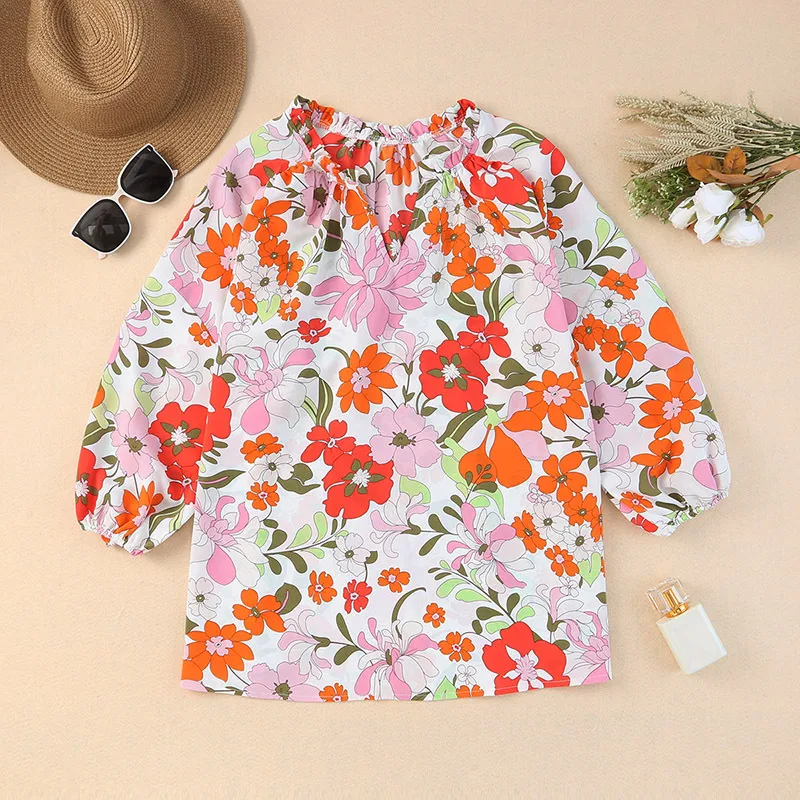 Women's Blouse Nine Points Sleeve Blouses Casual Elegant Flower