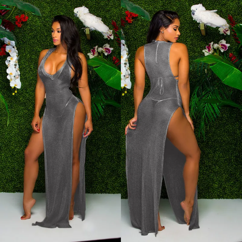 Wholesale Women's Bodycon Dress Elegant Luxurious Sexy Deep U Sleeveless Solid Color Maxi Long Dress Party Bar