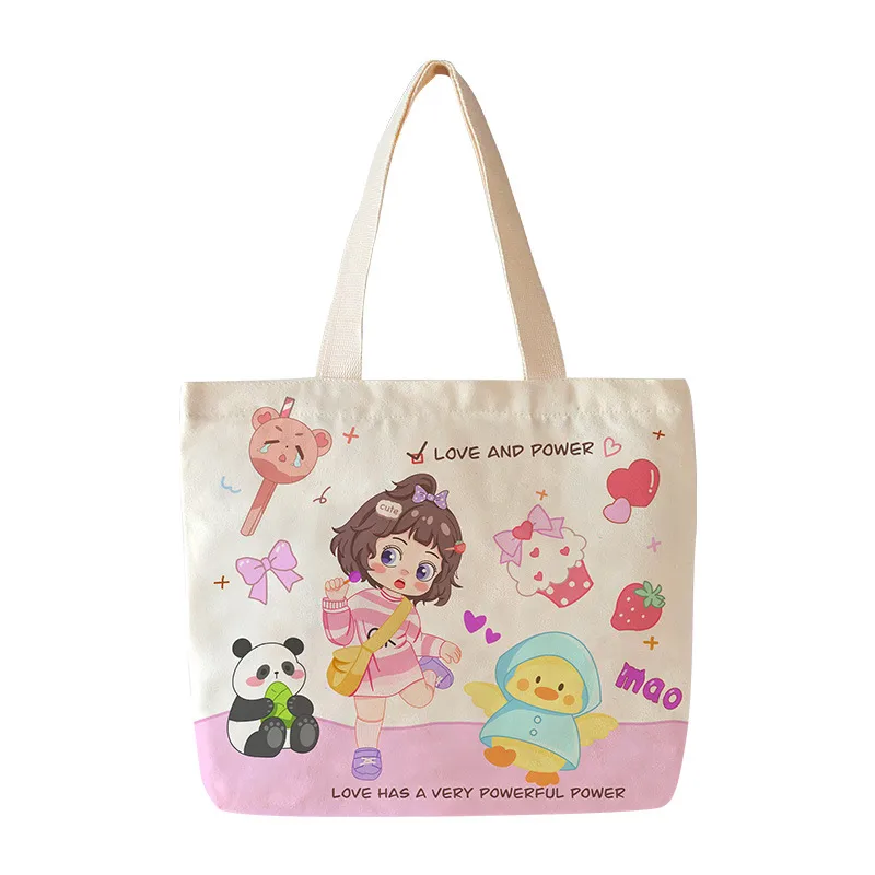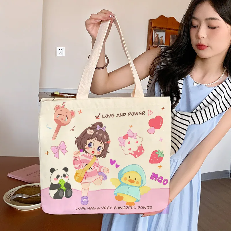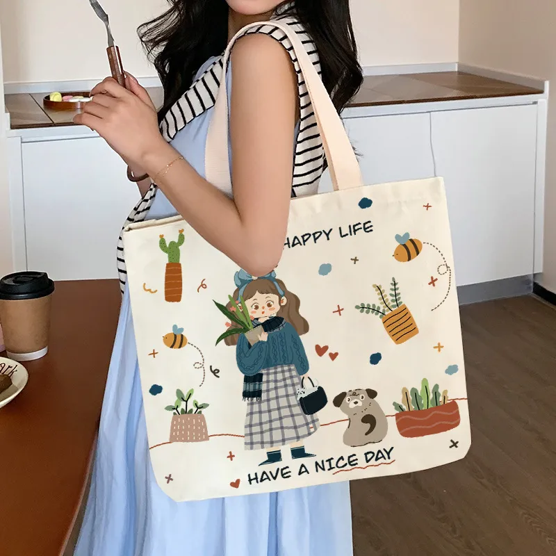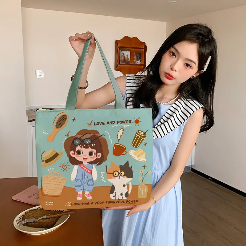 Wholesale Women's Canvas Animal Letter Plant Cute Square Zipper Canvas Bag