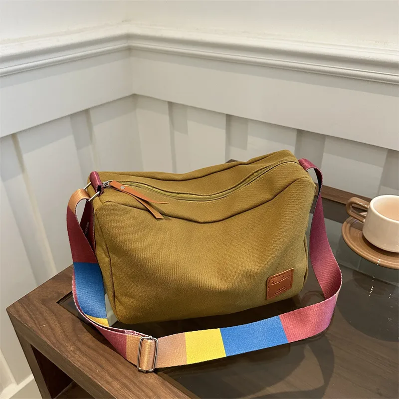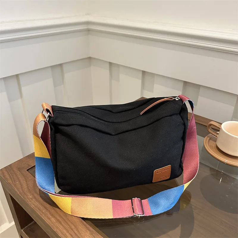 Wholesale Women's Canvas Letter Basic Sewing Thread Square Zipper Canvas Bag