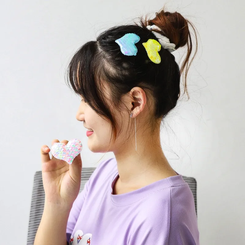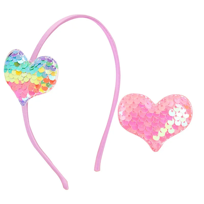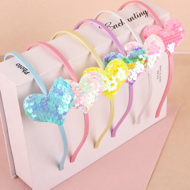 Wholesale women's cartoon style heart shape cloth sequins hair clip hair band