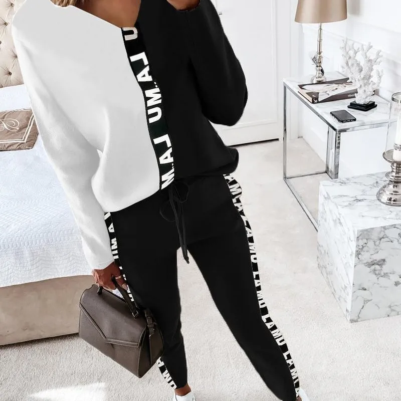 Women's Casual Fashion Printing Polyester Contrast Binding Pants Sets