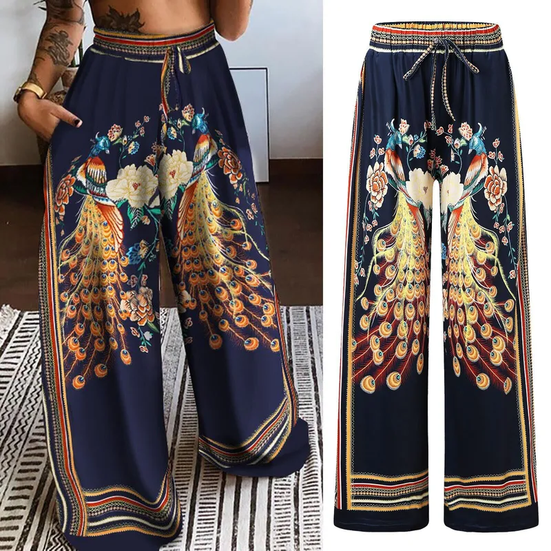 Wholesale Women's Casual Holiday Retro Printing Full Length Casual Pants