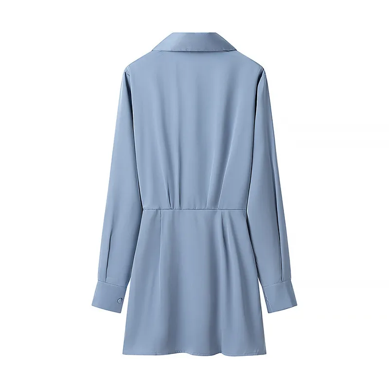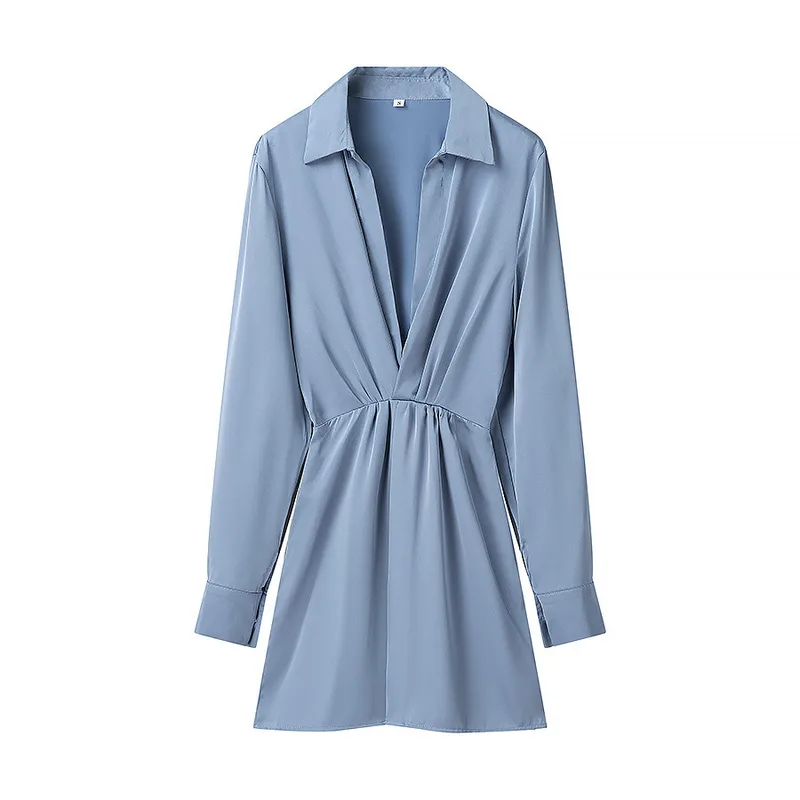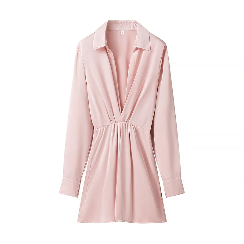Wholesale Women's Chiffon Dress Casual Deep V Pleated Long Sleeve Solid Color Above Knee Daily