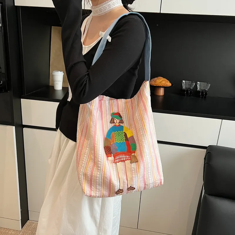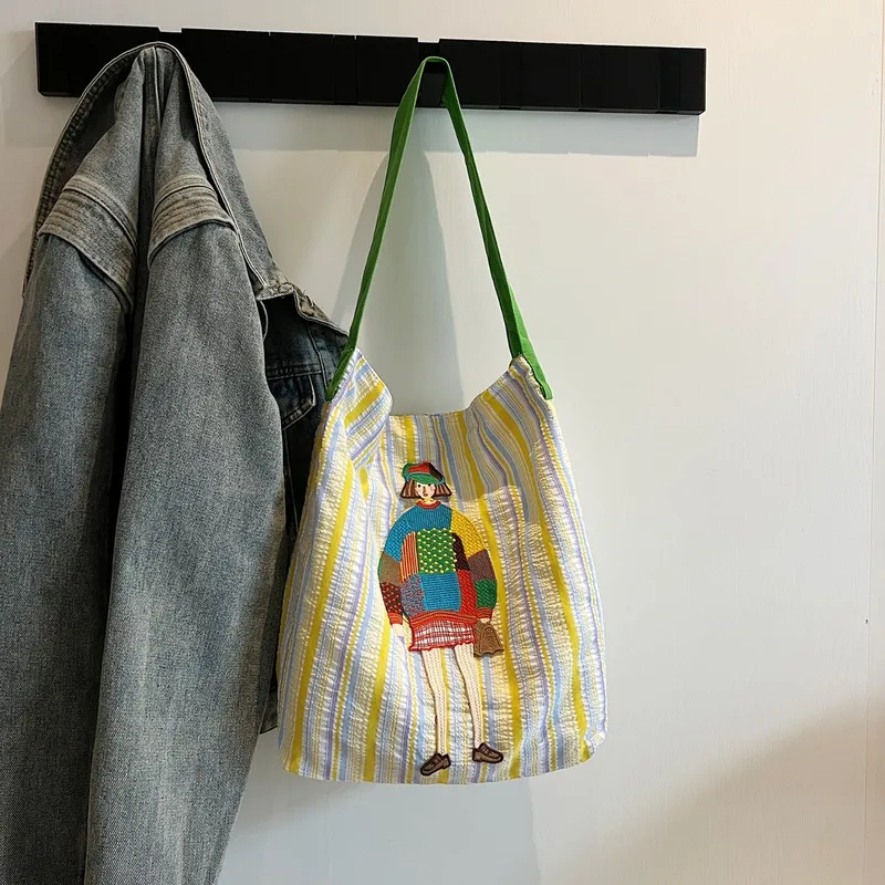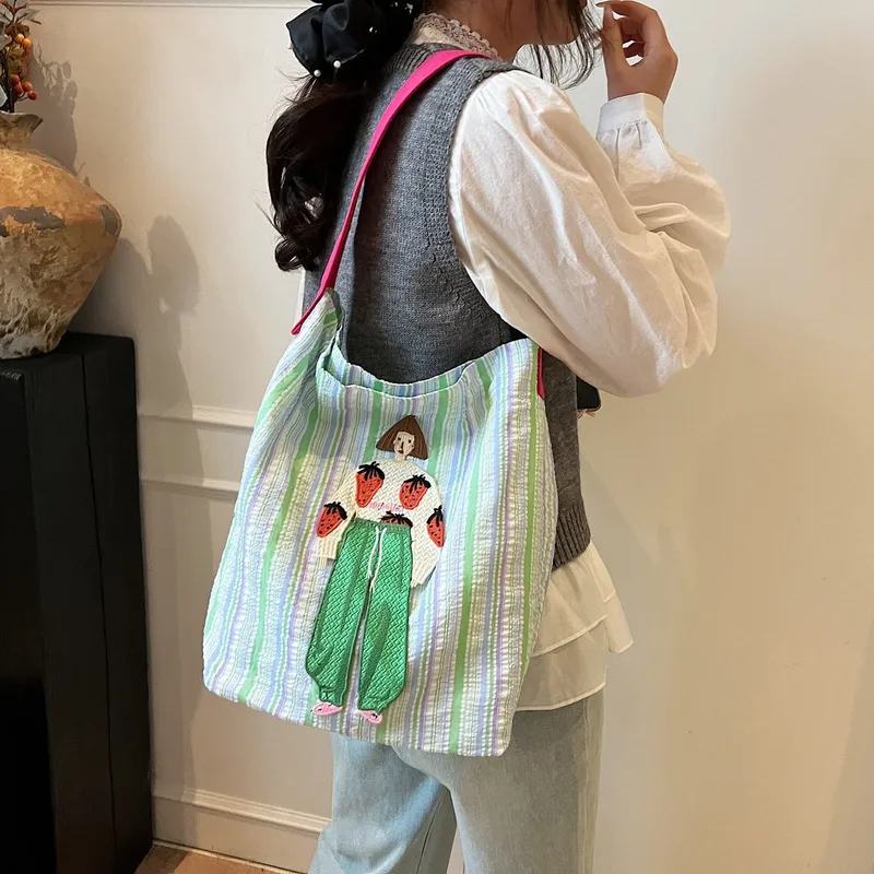 Women's Cloth Cartoon Stripe Cute Streetwear Square Magnetic Buckle Shoulder Bag