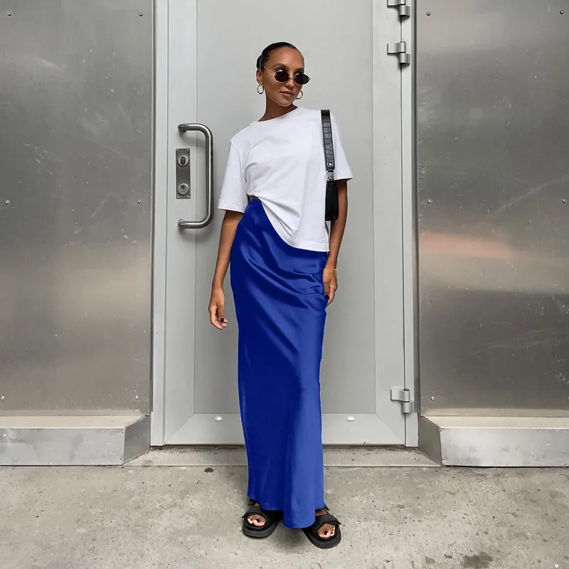 Wholesale Women's Clothing Spring and Summer Elegant Elegant Lady High-Grade Satin Artificial Silk Multi-Color Wholesale Skirt Long Skirt
