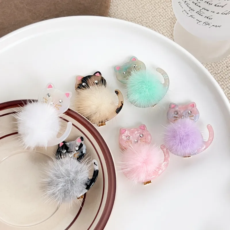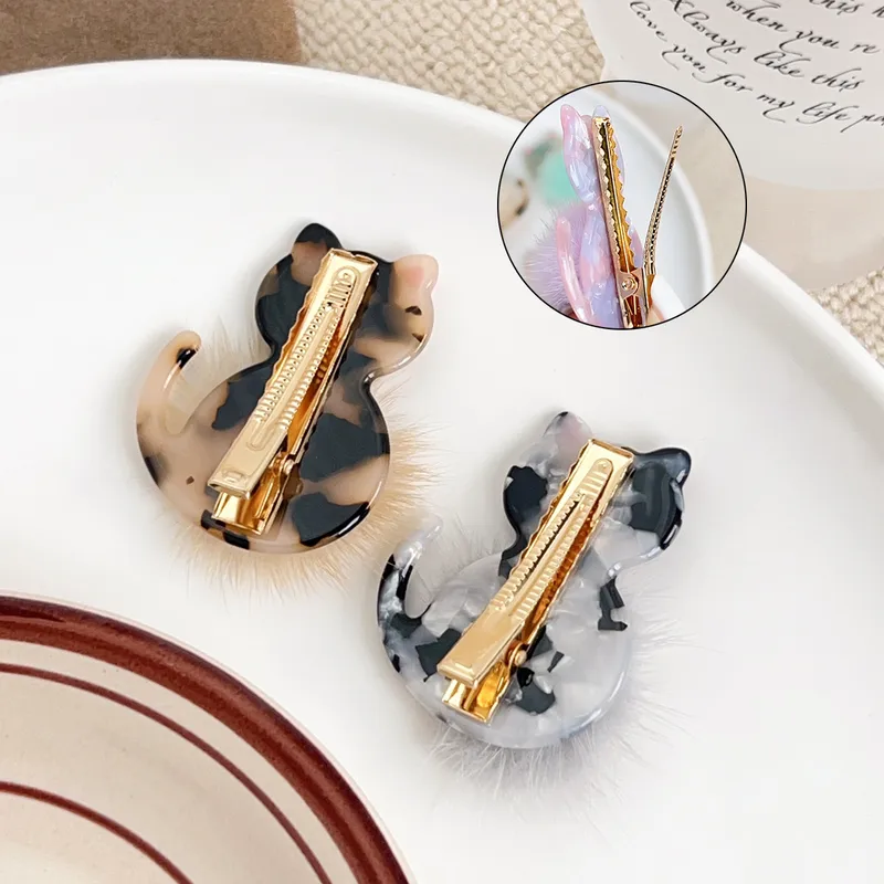 Women's Cute Cat Acetic Acid Sheets Polishing Inlay Rhinestones Hair Clip