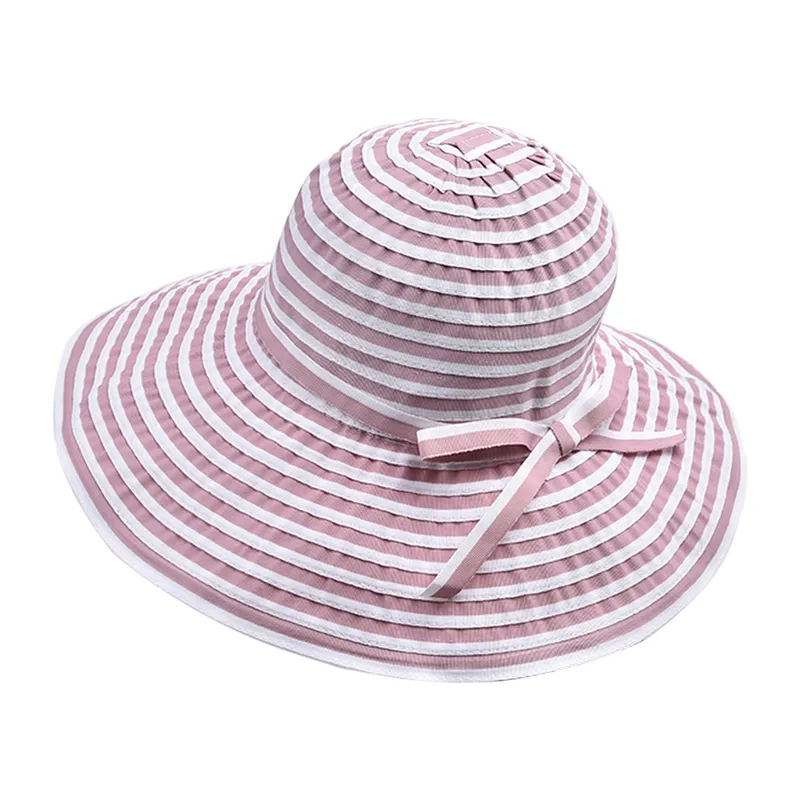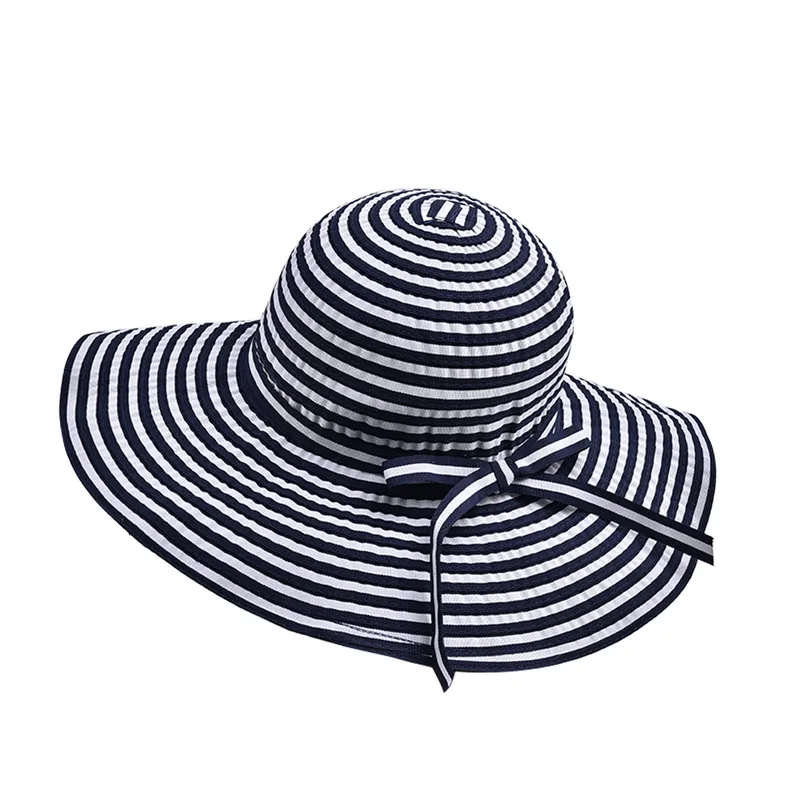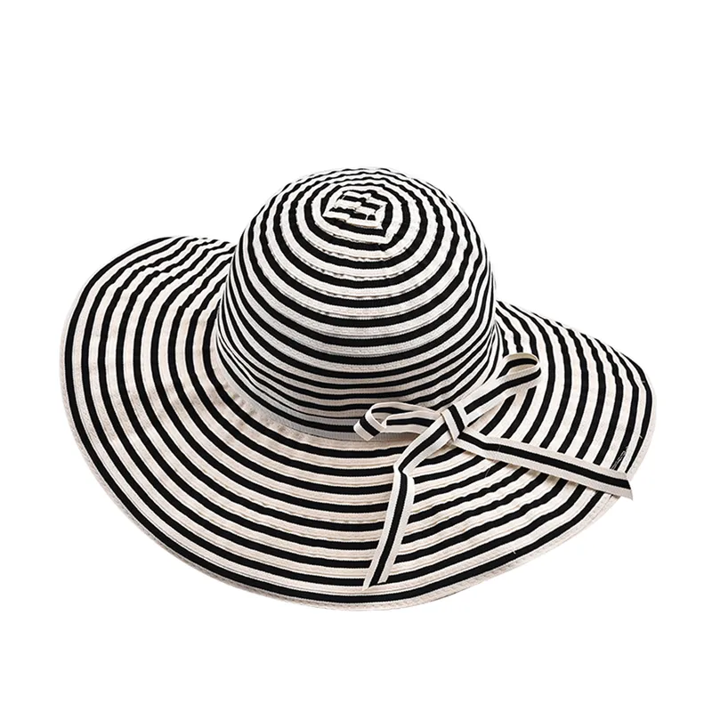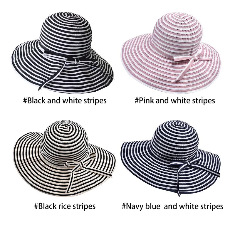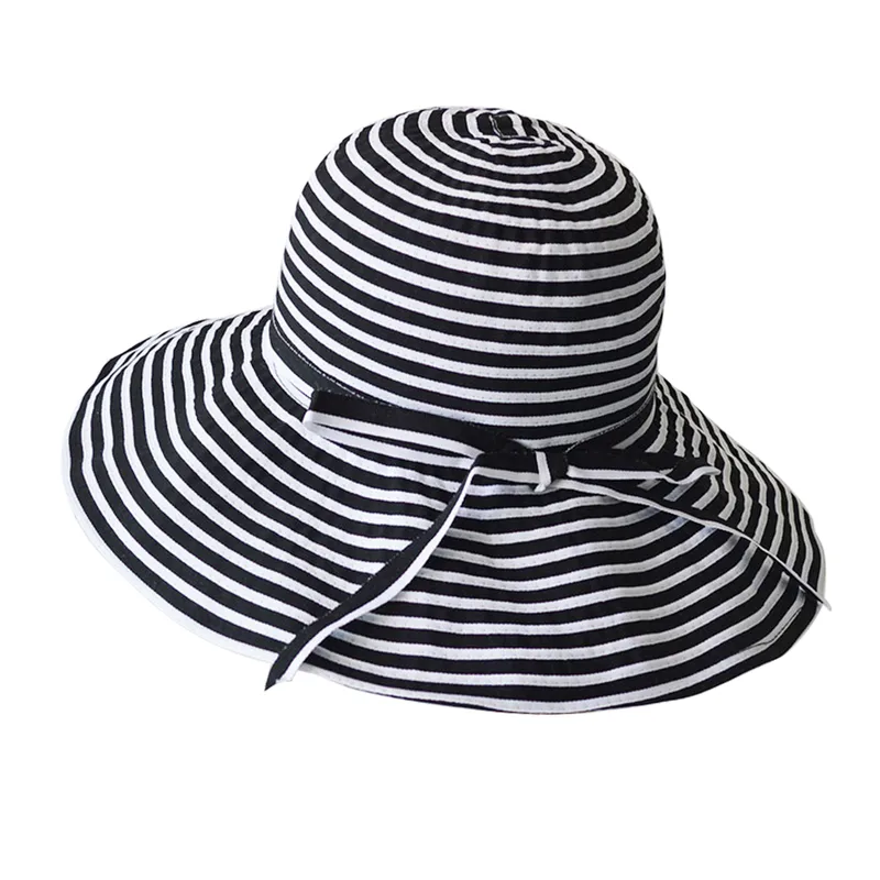Wholesale Women's Cute Sweet British Style Stripe Bowknot Big Eaves Sun Hat Bucket Hat