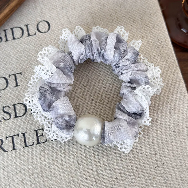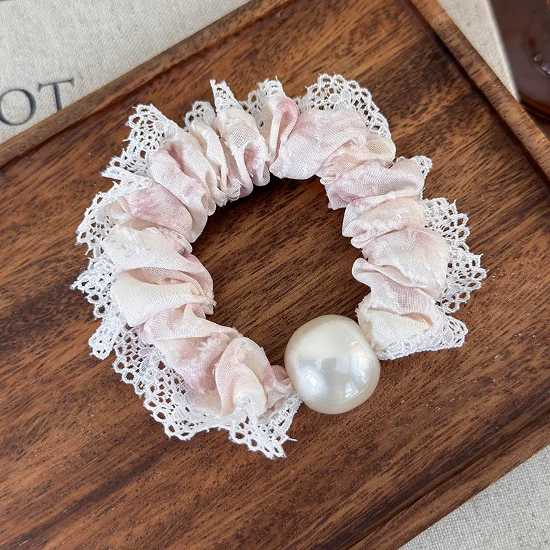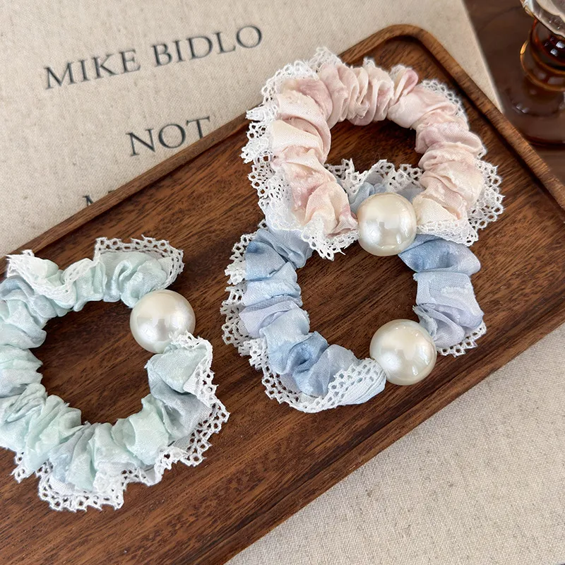 Wholesale Women's Cute Sweet Simple Style Tie Dye Imitation Pearl Lace Hair Tie