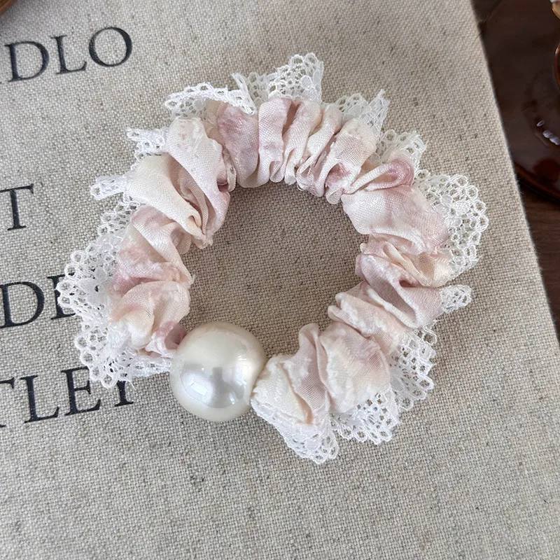 Women's Cute Sweet Simple Style Tie Dye Imitation Pearl Lace Hair Tie