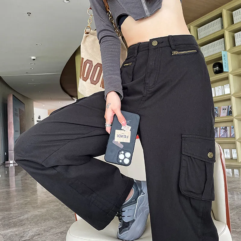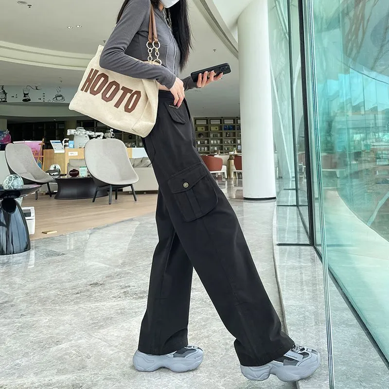 Wholesale women's daily casual solid color full length pocket cargo pants
