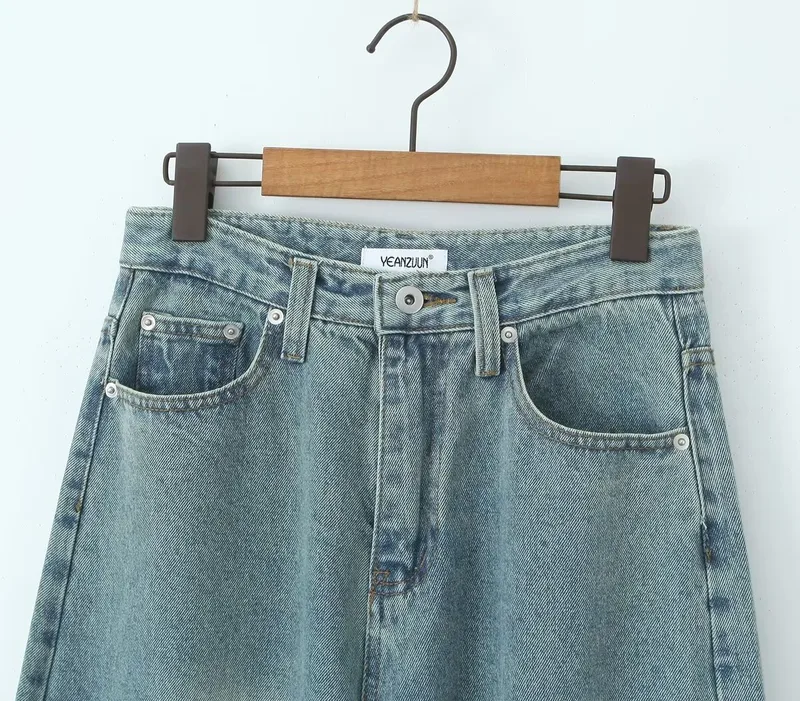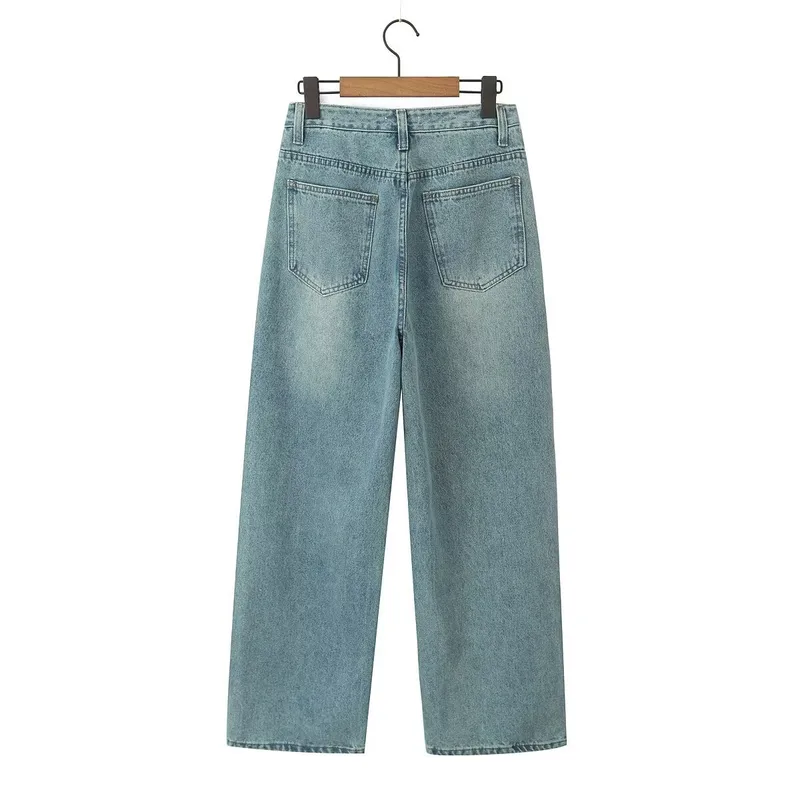 Wholesale Women's Daily Streetwear Solid Color Full Length Pocket Jeans Straight Pants