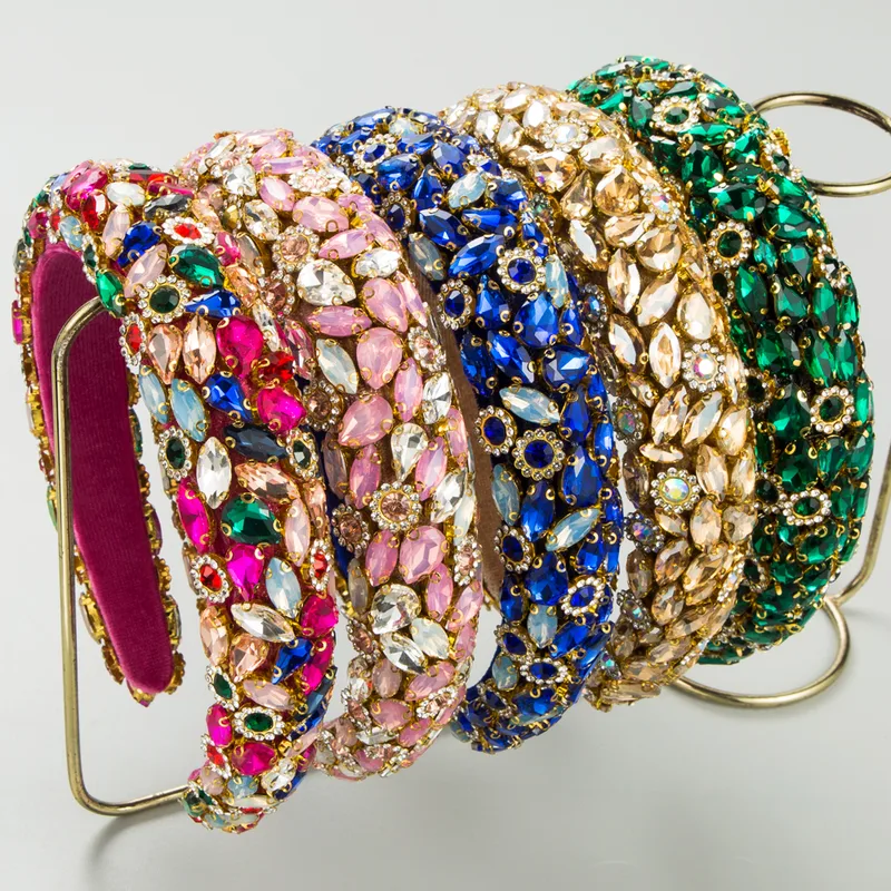 Wholesale Women's Elegant Glam Geometric Alloy Cloth Inlay Rhinestones Glass Hair Band