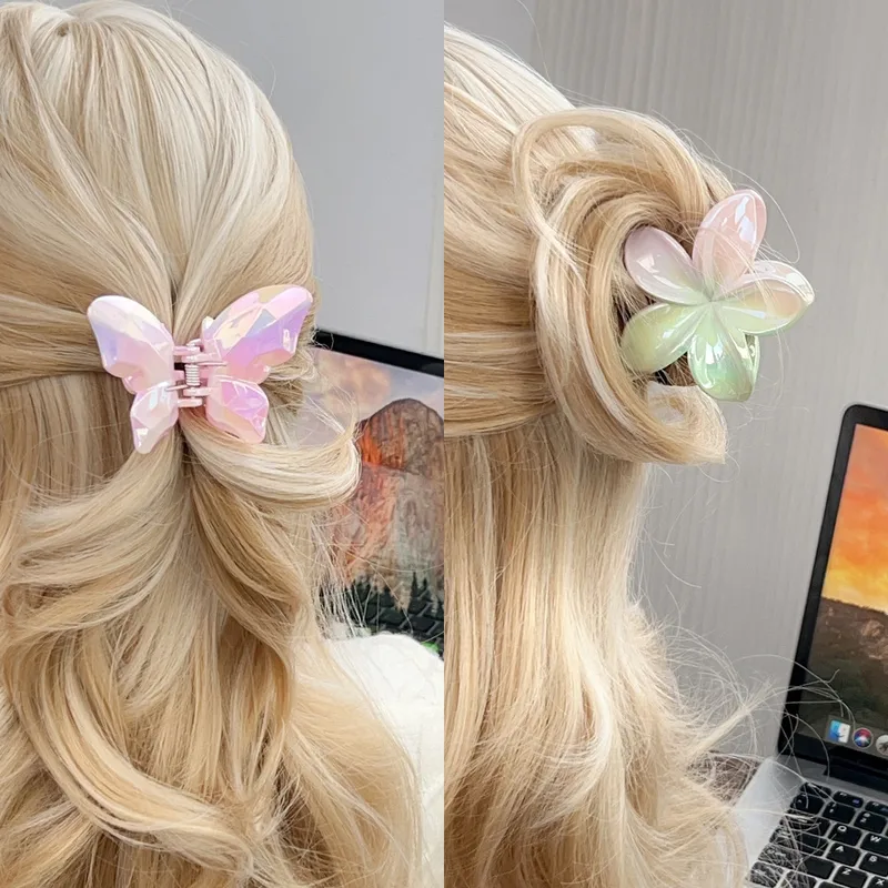 Women's Elegant Lady Leaves Flower Butterfly Plastic UV Plating Hair Claws