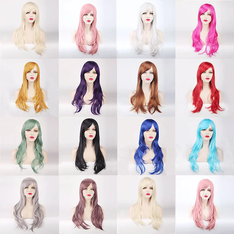 Wholesale women's elegant party stage cosplay high temperature wire side fringe long curly hair wigs