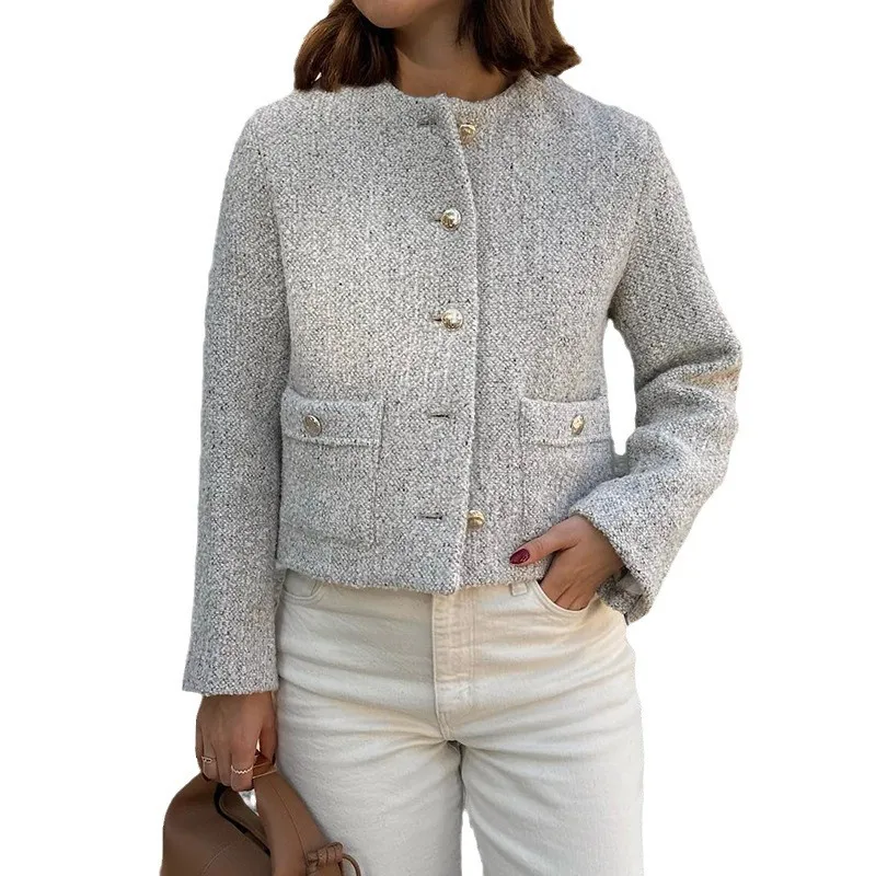 Wholesale Women's Elegant Solid Color Button Single Breasted Coat Casual Jacket