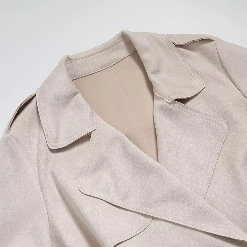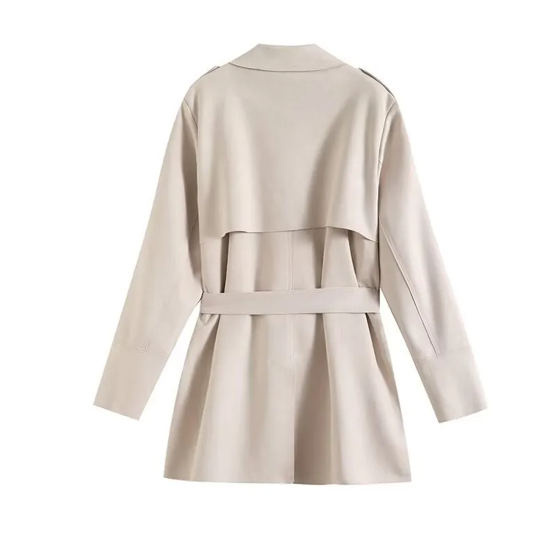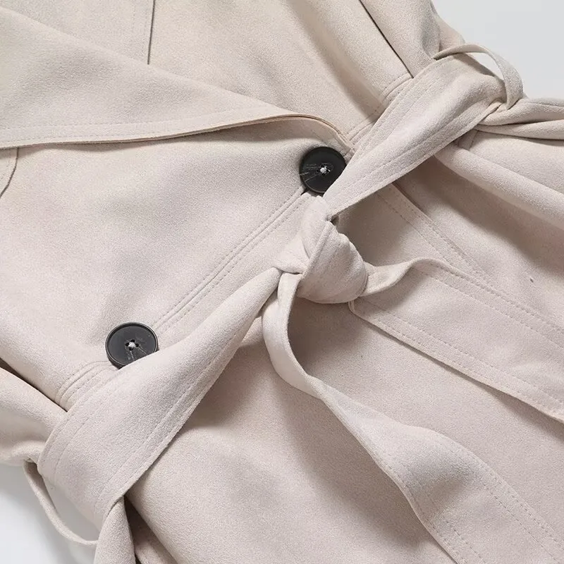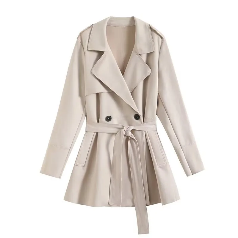 Wholesale Women's Elegant Streetwear Solid Color Belt Double Breasted Coat Trench Coat