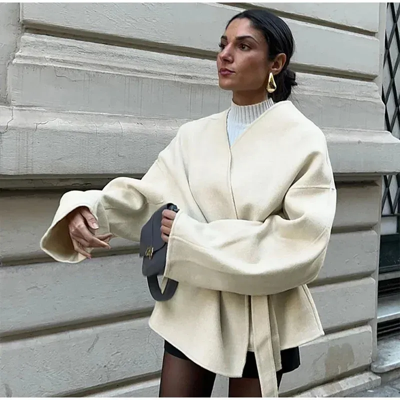 Women's Elegant Streetwear Solid Color Tie Casual Jacket