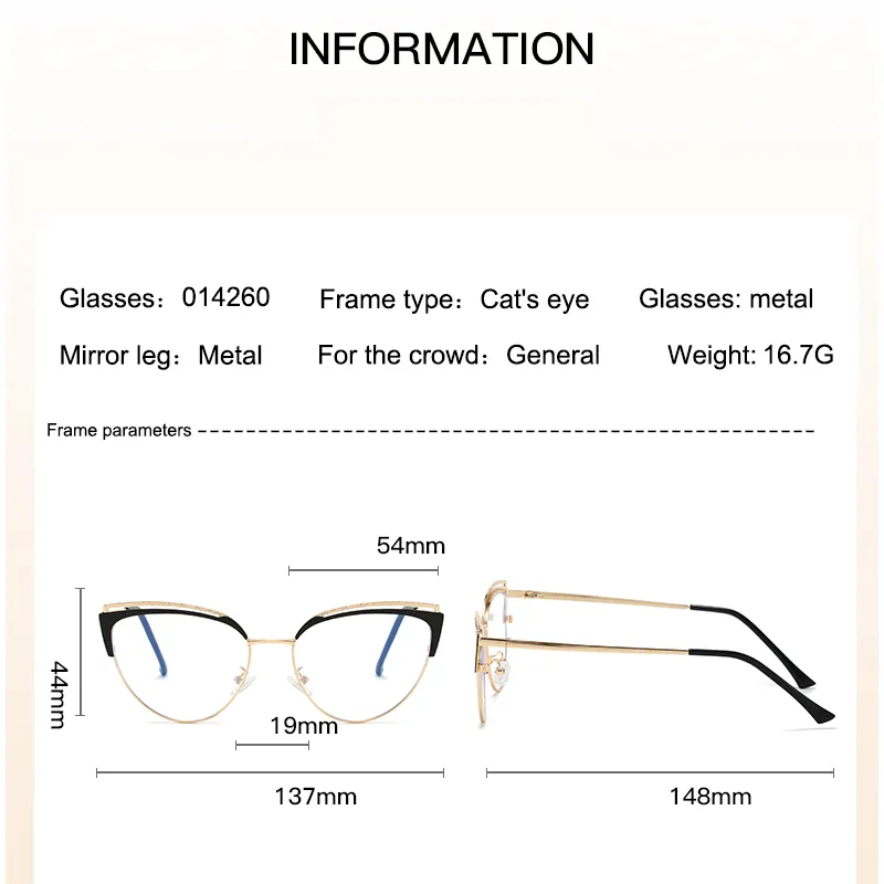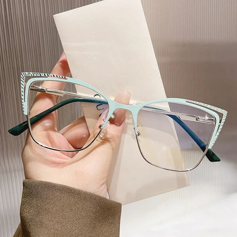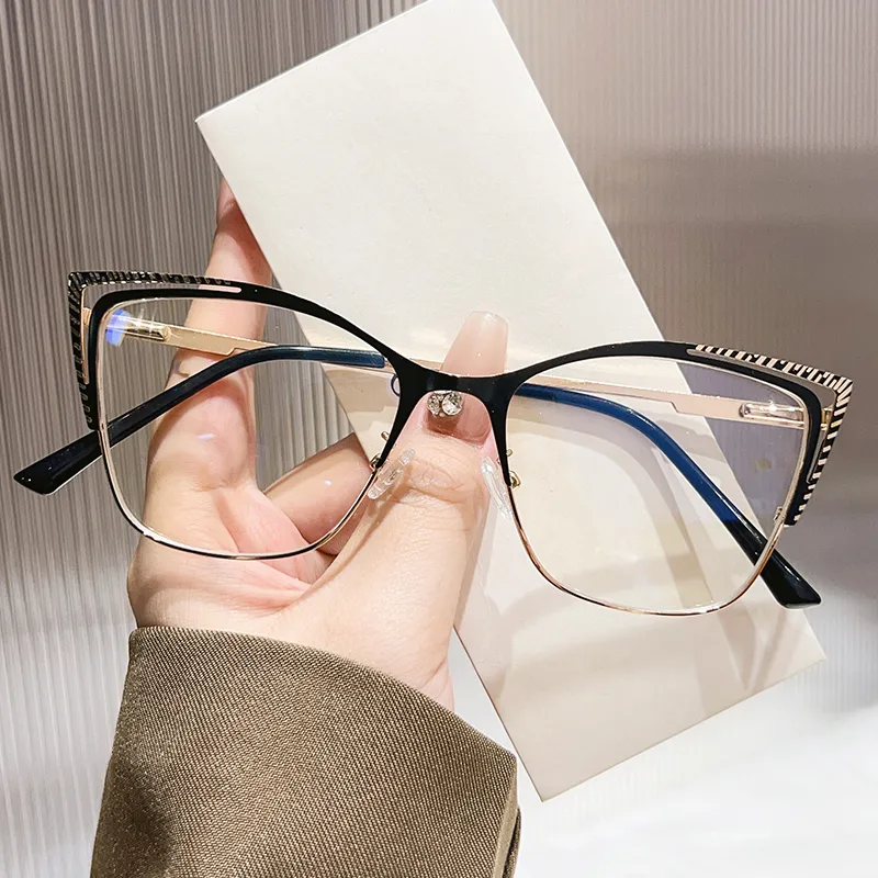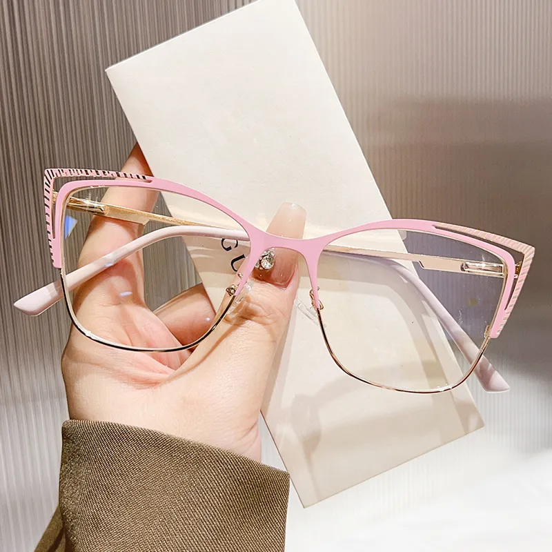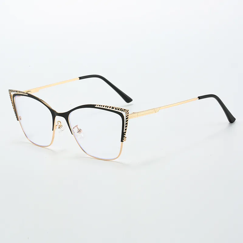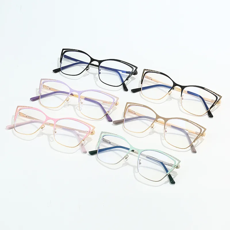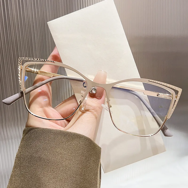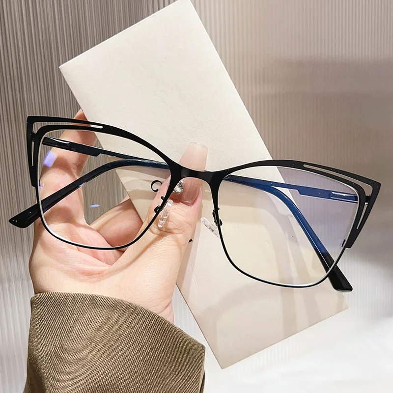 Wholesale Women's European and American Entry Lux Style Metal Full-Frame Stainless Steel Hollow Cat Glasses Anti-Blue Light Glasses Wholesale