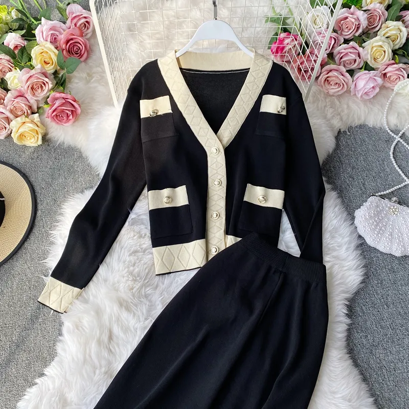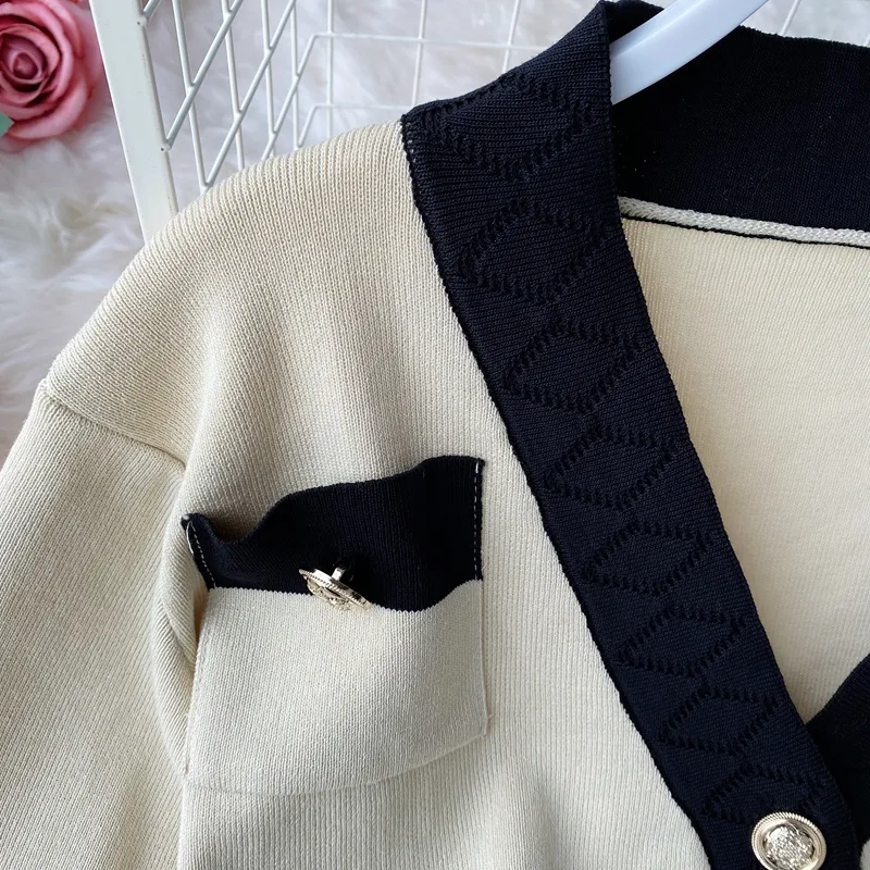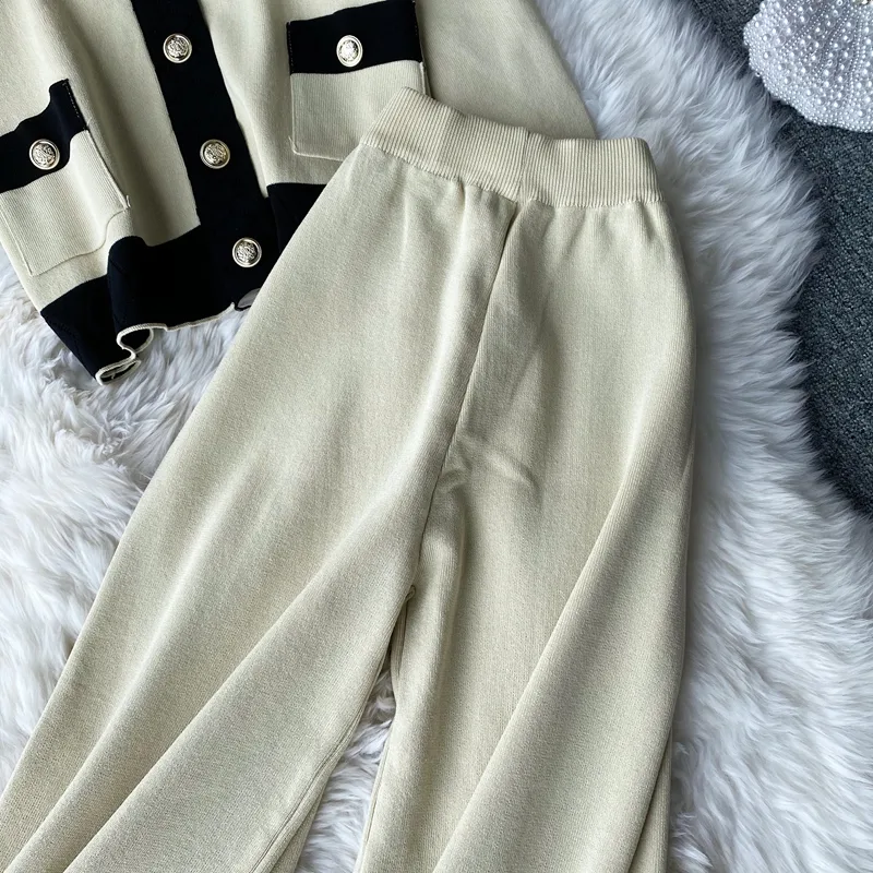 Women's Fashion Color Block Knit Pocket Pants Sets