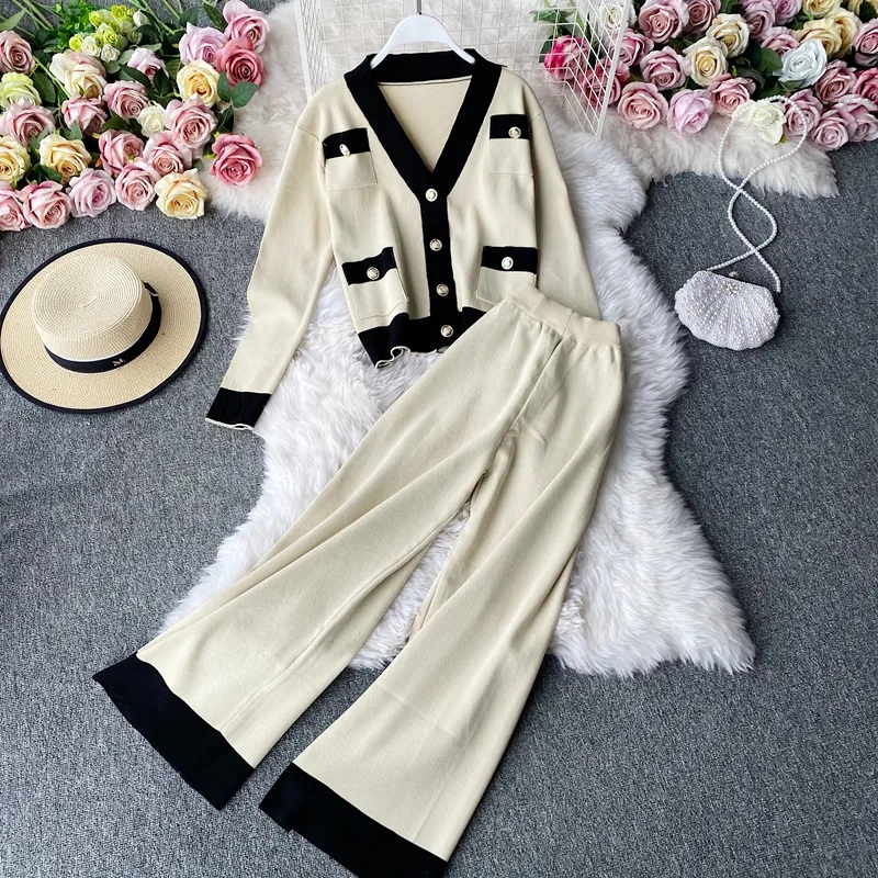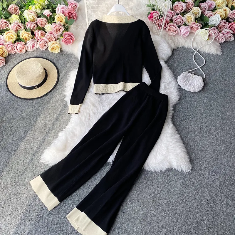 Wholesale women's fashion color block knit pocket pants sets