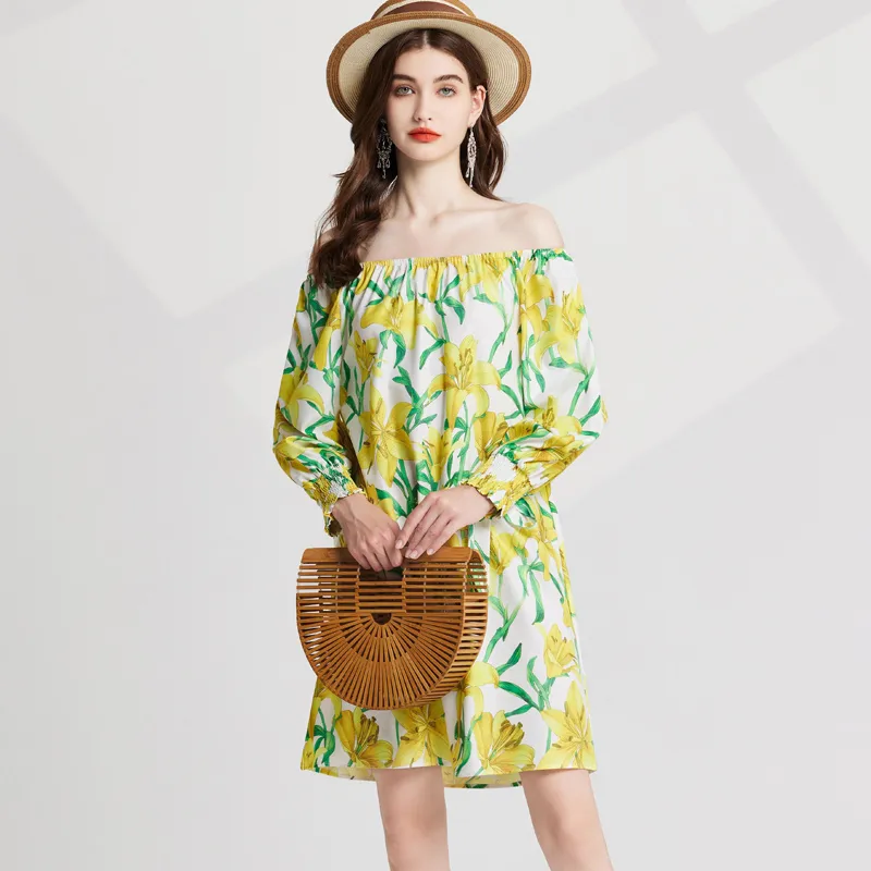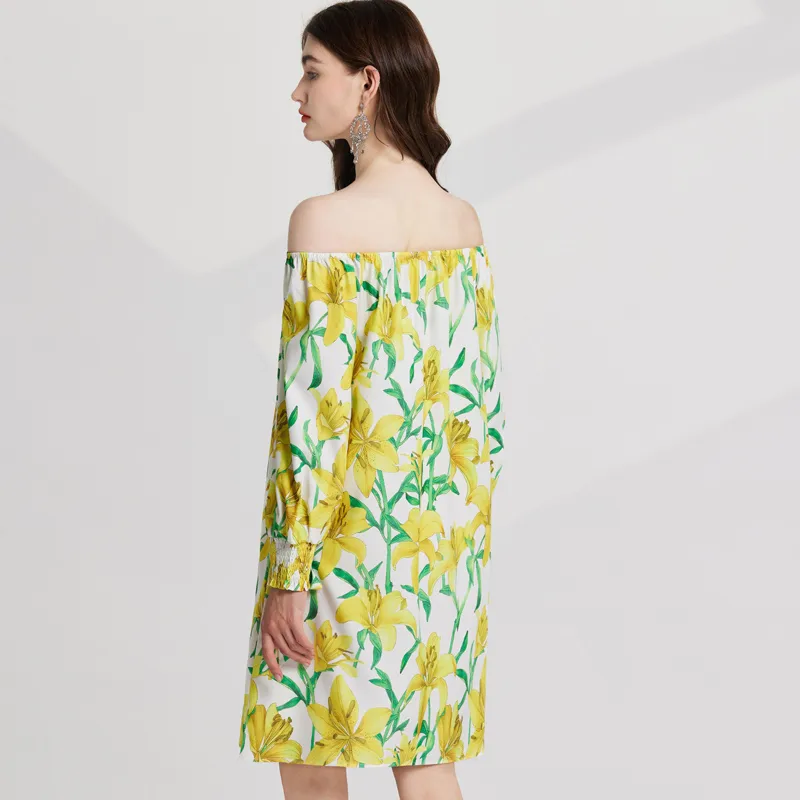 Wholesale Women's Floral Dress Vacation Sexy Off Shoulder Long Sleeve Flower Above Knee Daily Tea Party