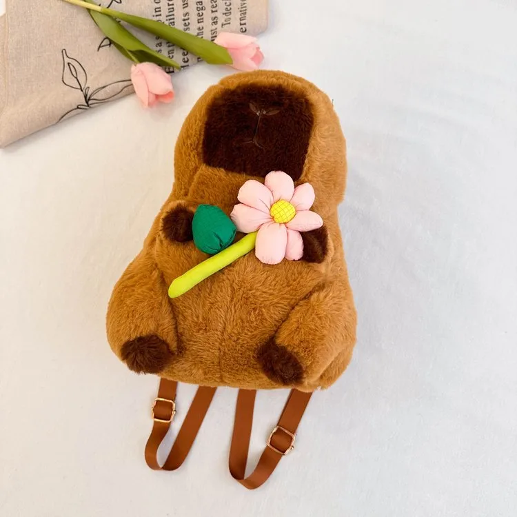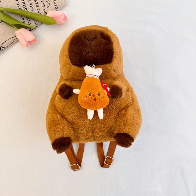 Women's Girl'S Plush Capybara Cute Oval Zipper Functional Backpack