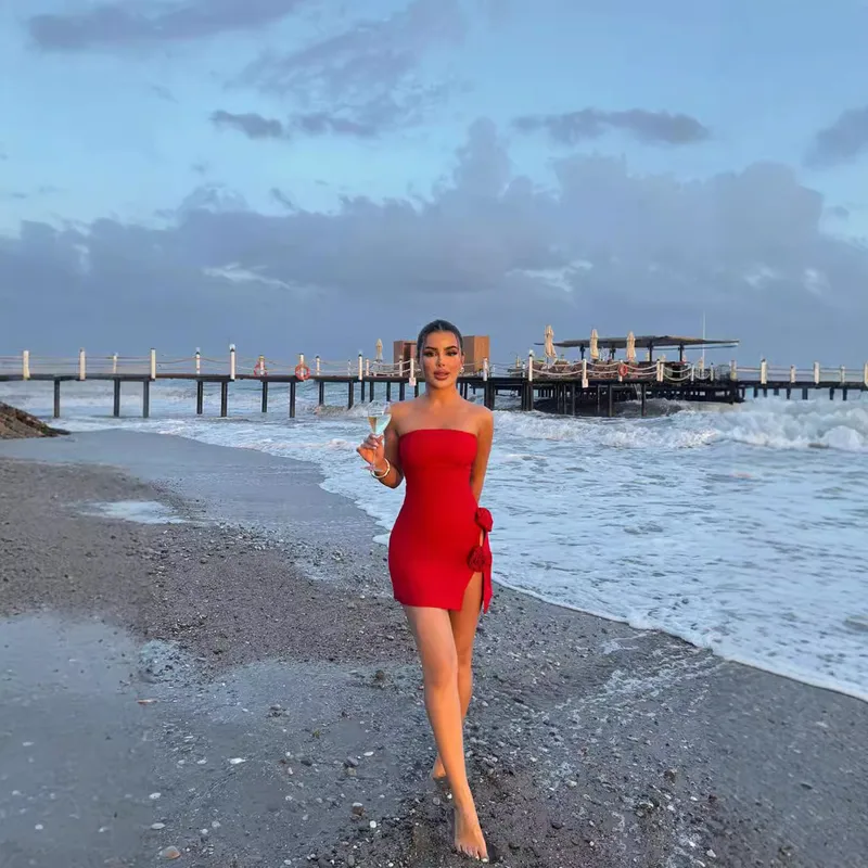 Wholesale Women's Hip skirt Streetwear Strapless Sleeveless Solid Color Above Knee Holiday