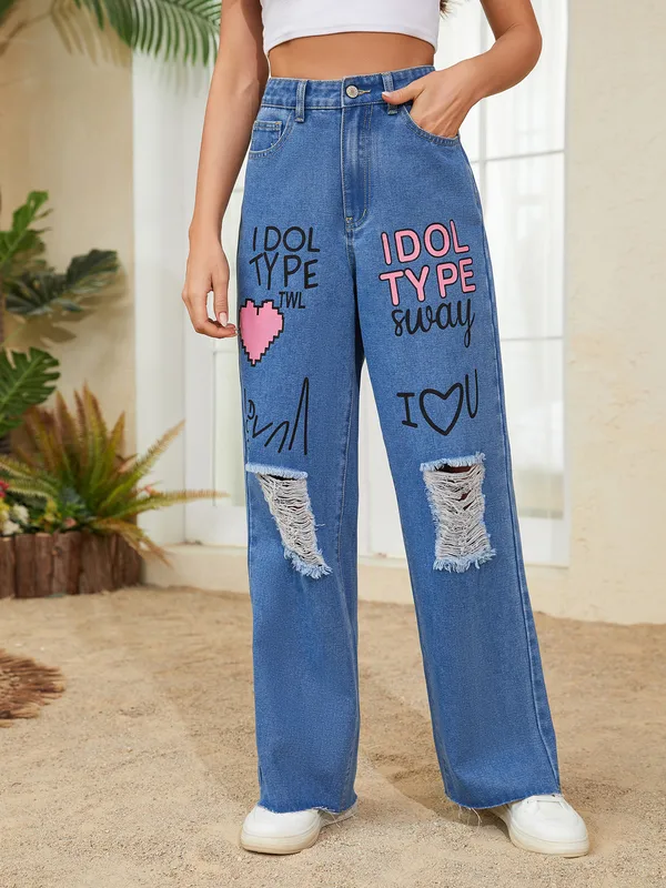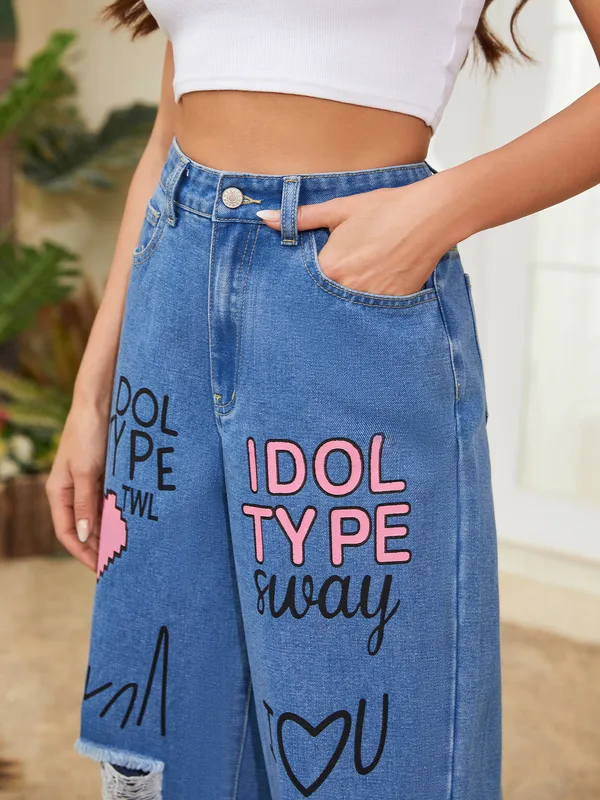 Women's Holiday Party Selfie Cute Simple Style Streetwear Letter Full Length Jeans