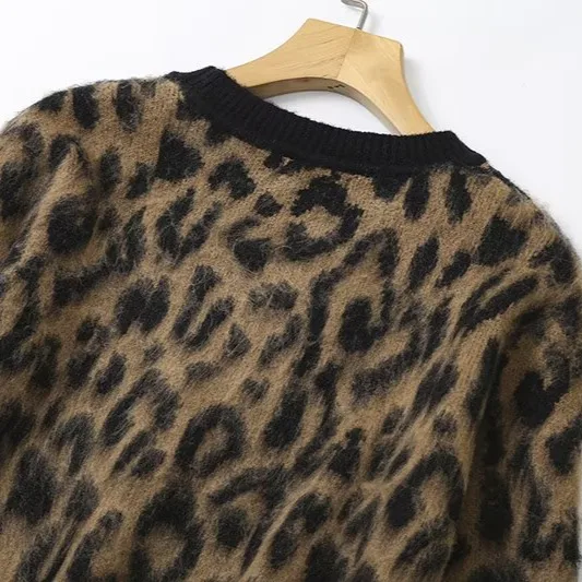 Wholesale Women's Knitwear Long Sleeve Sweaters & Cardigans Streetwear Leopard