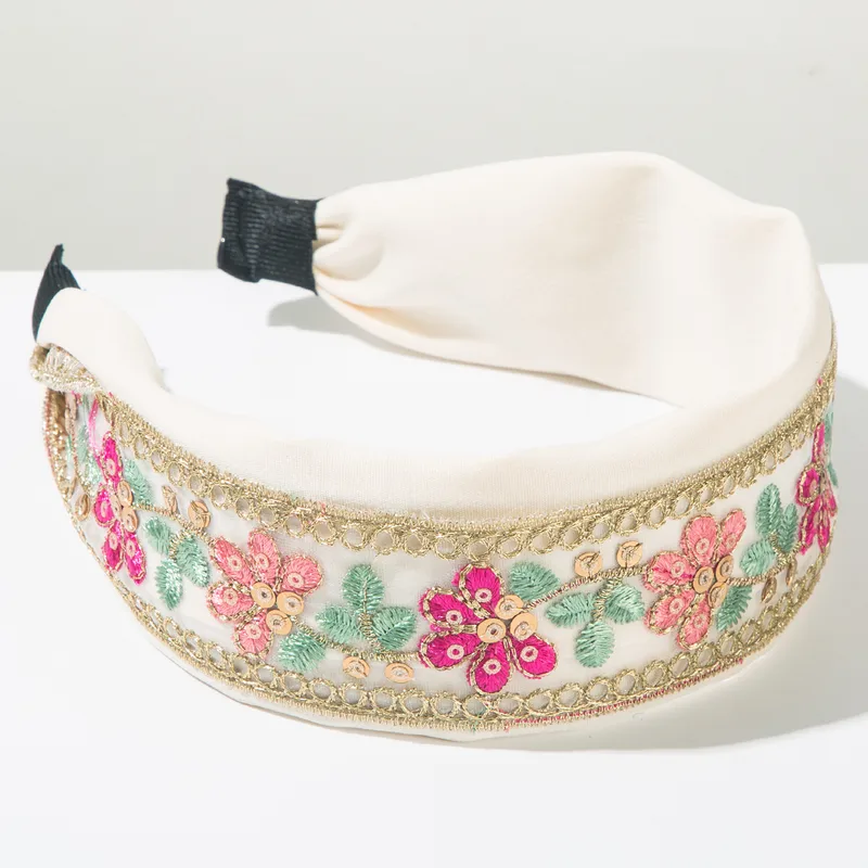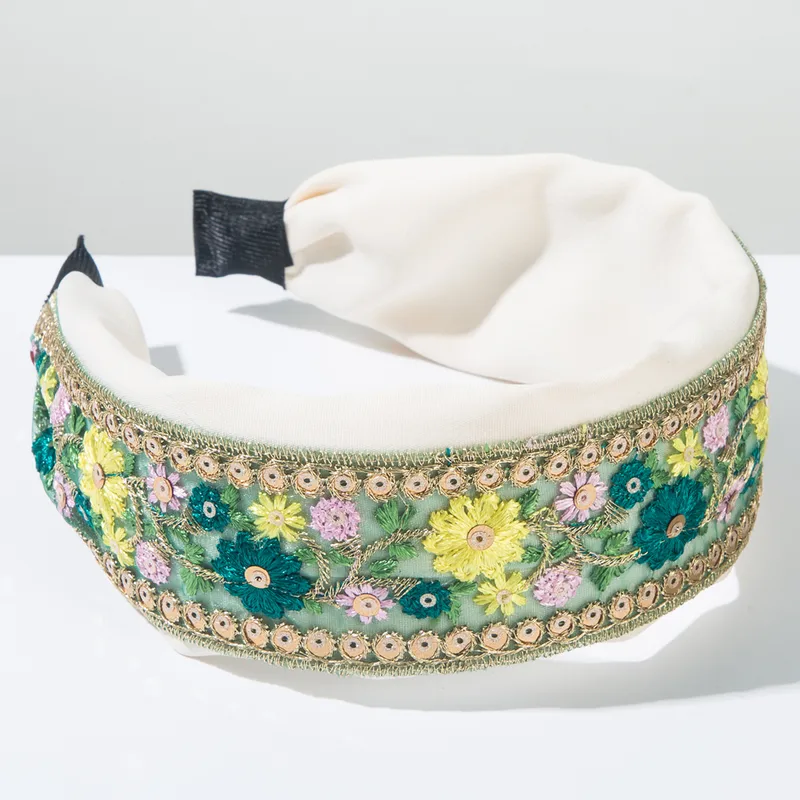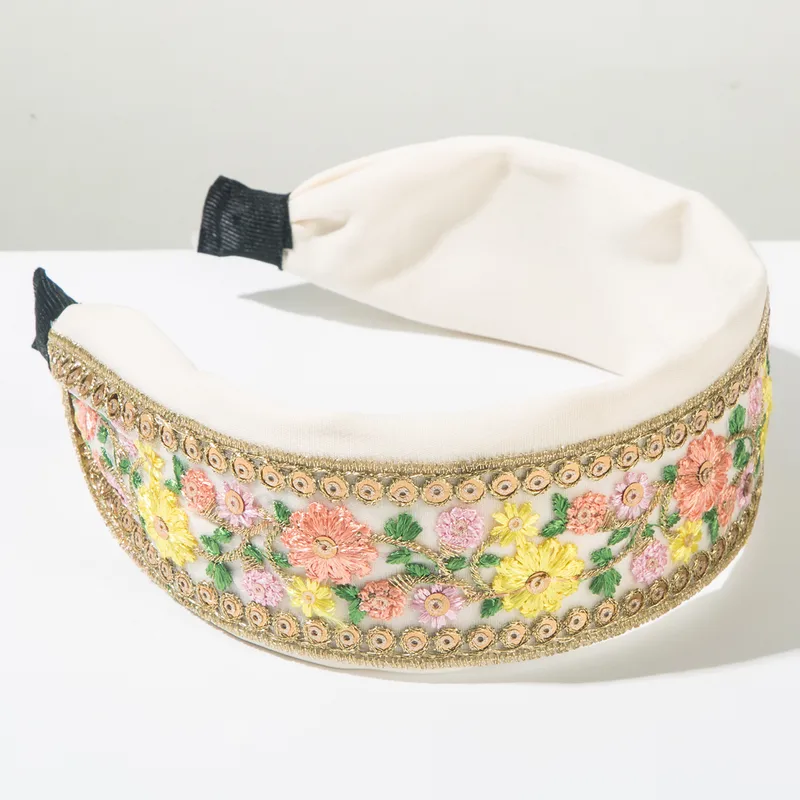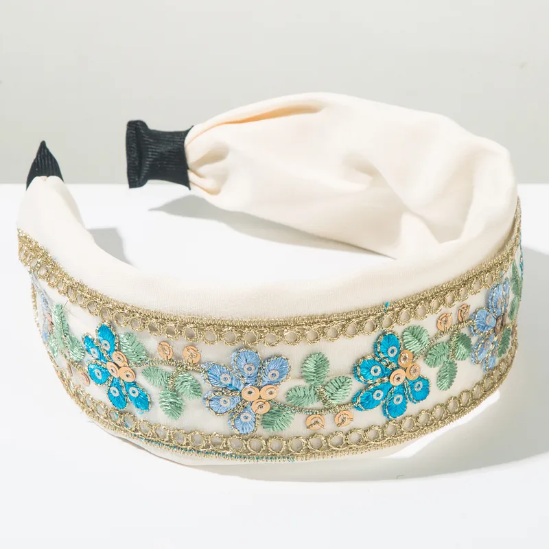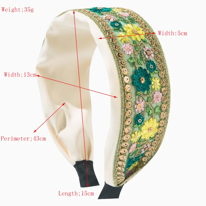 Women's Lady Classic Style Flower Cloth Embroidery Hair Band
